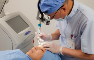 実際は少し滲む程度の出血は起こりますが、普通のメスに比べ格段に微量です。まぶたは血管が豊富なので今までは仕方が無かったのですが、これが手術後の腫れを長引かせ、手術時間も長くなる原因でした。